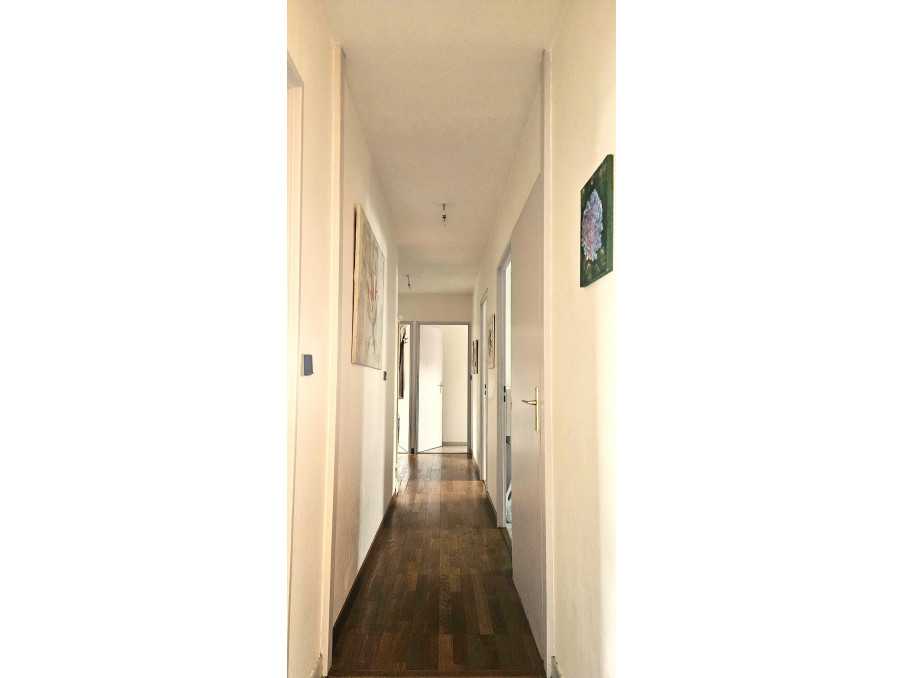 Une entrée, un séjour / salle à manger donnant sur une belle terrasse. Une première chambre avec placard et balcon, une cuisine équipée indépendante avec cellier, un dégagement dans le couloir desservant une chambre, deux autres chambres avec placard dont une amenant sur la terrasse, une salle de bain avec baignoire ( et emplacement lave-linge), un WC indépendant.