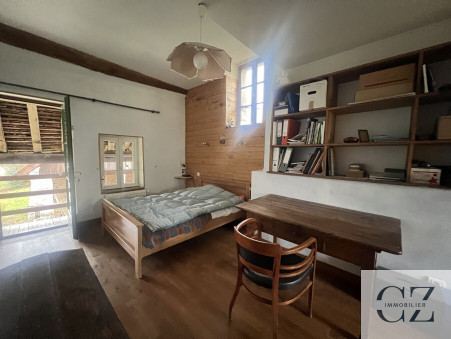 Un deuxième bâtiment comprend un gîte avec pièce de vie, poêle à bois et coin kitchenette, une chambre, une salle de bain avec WC, à l'étage une grande chambre, abris pour le bois.