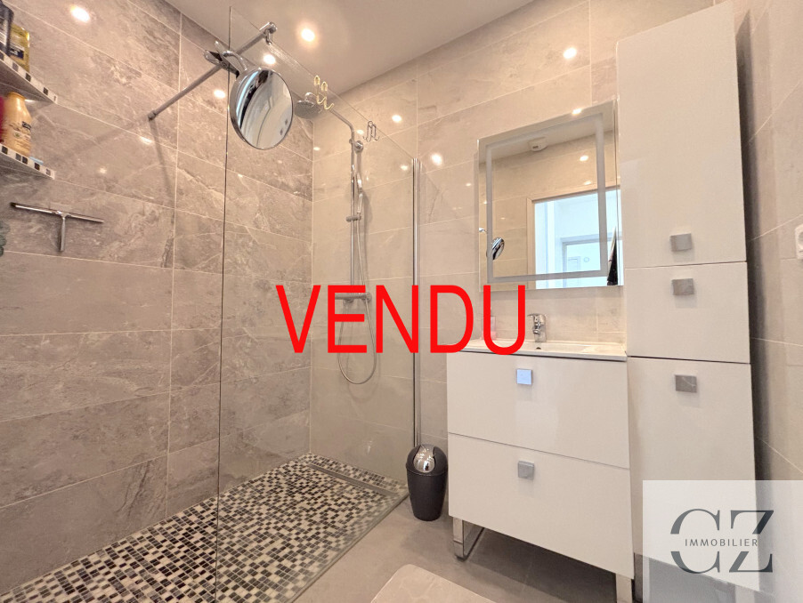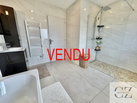 A l'étage : une mezzanine desservant trois belles chambres avec placards, une salle de bain double avec douche et baignoire ainsi qu'un WC indépendant.
