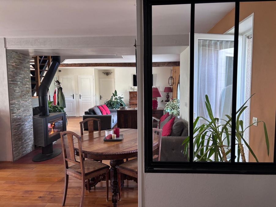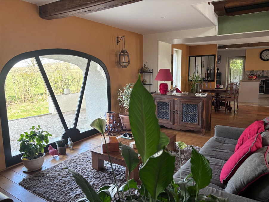 L'ensemble comprend un premier bâtiment type longère au charme de l'ancien de 161 m2 habitable (180m2 au sol) composé d'une très belle pièce de vie avec poêle à bois, une cuisine ouverte entièrement équipée donnant sur une terrasse couverte, une cuisine d'été/buanderie, WC indépendants, nombreux placards.